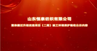 山東恒泰紡織有限公司整體搬遷升級改造項目(二期)竣工環(huán)境保護驗收公示內容